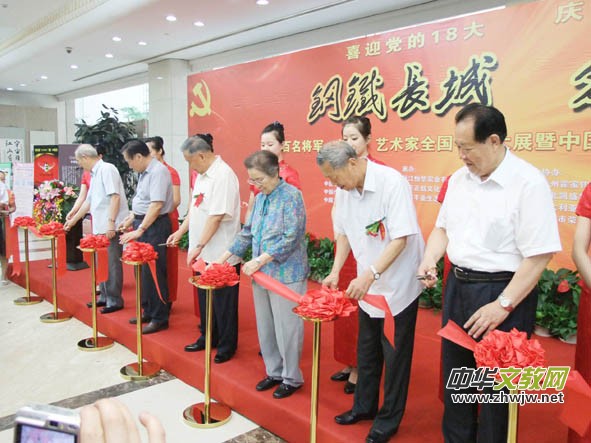 何魯麗副委員長(zhǎng)宣布“鋼鐵長(zhǎng)城 愛我中華——百名將軍、部長(zhǎng)、藝術(shù)家書畫大展暨中國(guó)長(zhǎng)城將軍書畫院五周年回顧展開幕”。首先由中國(guó)長(zhǎng)城將軍書畫院常務(wù)副院長(zhǎng)孫之貴少將致辭,國(guó)防大學(xué)原校長(zhǎng)邢世忠上將、民政部原副部長(zhǎng)陳虹同志先后講話,浙江華恒實(shí)業(yè)有限公司總經(jīng)理胡蓋瑞先生代表與會(huì)企業(yè)家發(fā)了言。頒獎(jiǎng)嘉賓分別向獲獎(jiǎng)的將軍、部長(zhǎng)、藝術(shù)家們頒發(fā)各類獎(jiǎng)項(xiàng)及獲獎(jiǎng)證書后,中國(guó)長(zhǎng)城將軍書畫院院長(zhǎng)崔根峰將軍向貧困小學(xué)和中國(guó)慈善總會(huì)捐獻(xiàn)了價(jià)值100萬元的書畫墨寶并發(fā)表了感言。