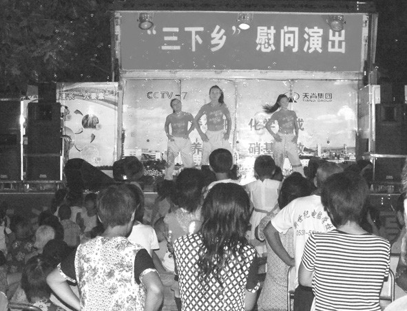 文化下鄉(xiāng)“惠”鄉(xiāng)親 山東省定陶縣積極開展文化、科技、衛(wèi)生“三下鄉(xiāng)”活動,除組織好鄉(xiāng)土文藝節(jié)目外,還聯(lián)合知名企業(yè)開展下鄉(xiāng)活動,節(jié)目有舞蹈、小品、歌曲等表演形式,內(nèi)容涉及黨的方針政策、婚育文化、科教知識等,貼近農(nóng)村群眾文化生活,受到大家好評。圖為“三下鄉(xiāng)”移動大舞臺在陳集鎮(zhèn)崔莊村演出。 (本報記者 苑肇波 攝)