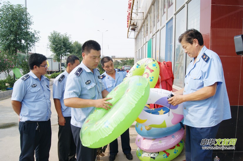 本報(bào)訊 夏季是游泳圈銷售高峰期,為保障人民群眾生命安全,近日,山東省濰坊市工商局濱海分局對轄區(qū)游泳圈商家進(jìn)行突擊檢查。工商人員分別對海邊人工沙灘攤點(diǎn)、游泳用具專賣店、超市商場等20余家商戶進(jìn)行檢查,對個(gè)別商戶的游泳用品存在無警示標(biāo)語、標(biāo)識標(biāo)注不合格,充氣泳圈材質(zhì)極薄、制作粗糙、無廠名廠址等問題,執(zhí)法人員進(jìn)行督促整改,責(zé)令下架處理。圖為現(xiàn)場檢查。 (李琦 侯照華 攝影報(bào)道)