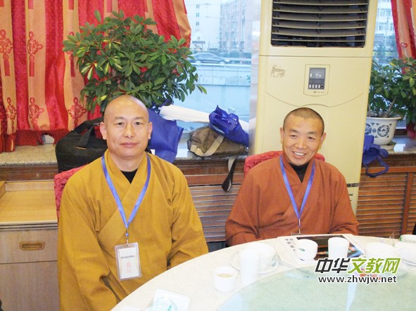 中國寺廟文化促進(jìn)會副會長圣明和理事能成法師在活動現(xiàn)場