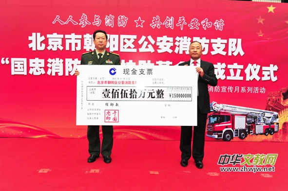 報(bào)訊 11月3日,北京朝陽(yáng)區(qū)公安消防支隊(duì)舉行了“國(guó)忠消防官兵撫助基金”成立儀式。活動(dòng)中,中國(guó)公益事業(yè)促進(jìn)會(huì)副會(huì)長(zhǎng),社會(huì)愛心人士,于國(guó)忠先生向朝陽(yáng)消防支隊(duì)捐贈(zèng)150萬(wàn)元人民幣幫助建立“國(guó)忠消防官兵撫助基金”,主要用于因戰(zhàn)犧牲、傷殘和家庭困難官兵的撫助。