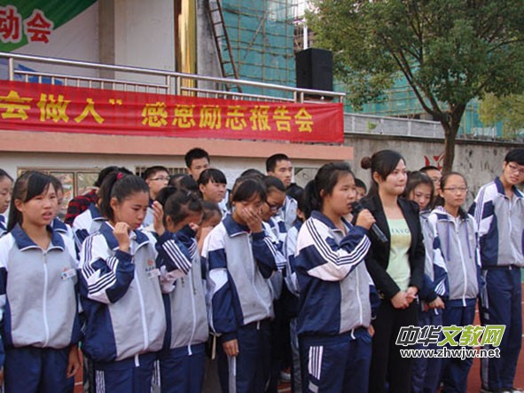 為了更有效地開展德育工作,讓廣大學(xué)生理解父母,感恩老師,在感恩中勵志發(fā)奮,自立自強,10月31日下午,浙江省永嘉縣城關(guān)中學(xué)在學(xué)校操場舉行了一場別開生面、震撼人心的以“心懷感恩 學(xué)會做人”為題的感恩勵志教育演講活動,全校2000余名師生以及部分學(xué)生家長聆聽了講演。