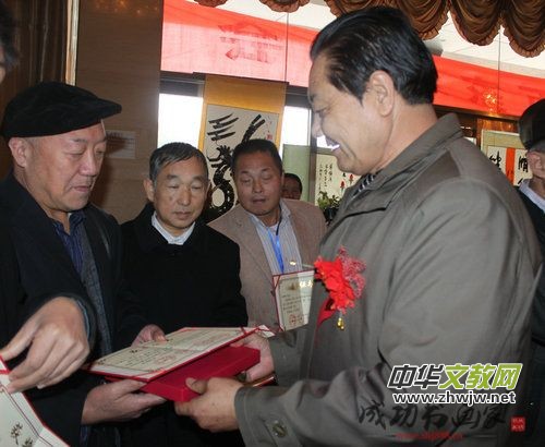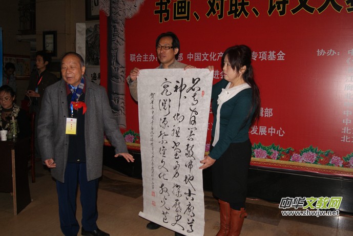 中國(guó)國(guó)寶書畫研究院秘書長(zhǎng)謝飛向組委會(huì)贈(zèng)送書法作品并講話