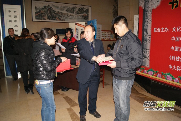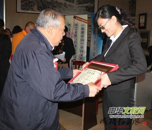 中國(guó)地方政府研究所文化辦公室主任任自軍為獲獎(jiǎng)?wù)叽眍C獎(jiǎng)