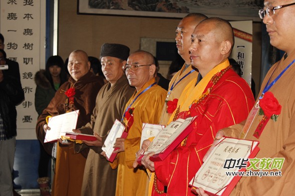 為佛教界代表頒獎(jiǎng)證書