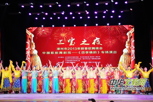本報(bào)訊 1月11日晚,福建省漳州市人民劇場流光溢彩,座無虛席。“三寶之夜”漳州市2013年新春歌舞晚會(huì)在這里傾情上演,來自中國歌劇舞劇院的演員們?yōu)槭忻穹瞰I(xiàn)了一臺(tái)精彩的民族樂舞盛會(huì)--《四季情韻》。120分鐘的表演歡呼聲、叫好聲不斷,臺(tái)上的歌舞交融讓臺(tái)下的觀眾沉浸在如癡如醉、四季絢爛的美景之中。