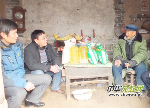本報訊 日前,山東省菏澤市直選派“第一書記”駐定陶縣陳集鎮(zhèn)工作組,開展“訪農(nóng)家、送溫暖”活動,對所包5個村莊的老黨員、老干部和計生困難戶進行春節(jié)慰問,為他們送去了大米、面粉、食用油等生活用品。圖為駐村“第一書記”在八里廟村慰問困難群眾。 (本報記者 苑肇波 攝)
