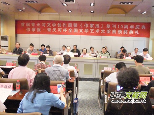 本報訊 5月17日至19日,首屆青天河文學(xué)創(chuàng)作周,《作家報》復(fù)刊10周年慶典暨作家報·青天河杯全國文學(xué)藝術(shù)大獎賽頒獎典禮在河南博愛縣青天河景區(qū)舉行。《人民日報》社高級編審、中國散文學(xué)會副會長、著名作家石英、中國文聯(lián)《神州》雜志社副社長、全國科管委低碳生態(tài)產(chǎn)業(yè)管理委員會主任、作家毛曉春、著名詩人梁小斌、河南文藝出版社原社長、中外散文詩學(xué)會副主席王福明、《中國作家》雜志社主任編輯、中國作家新創(chuàng)作論壇秘書長任啟發(fā)、中國寺廟文化促進(jìn)會會長、《科技信息報·今日文教》周刊主編、知名詩人、書法家笑琰(靳新國)、山東省濟(jì)南市作家協(xié)會副主席、著名詩人、作家羅珠、中國散文家協(xié)會副主席、內(nèi)蒙古作家協(xié)會副主席、內(nèi)蒙古阿拉善盟文聯(lián)主席張繼煉、《作家報》總編、著名作家張富英、副總編、作家祝雪、著名作家詩人沉沙、軍旅作家王國棟、《散文選刊》中旬刊執(zhí)行主編、知名散文詩作家張殿武、山東省散文學(xué)會副會長、濱州市作家協(xié)會主席、著名散文家李登建、北京市寫作學(xué)會高級顧問、回族著名詩人閃世昌、博愛縣副縣長李秀萍、博愛縣縣委宣傳部副部長、縣文廣新局書記、作家張海生、青天河風(fēng)景區(qū)管理局局長是明友等來自全國的作家、詩人150余人到會。