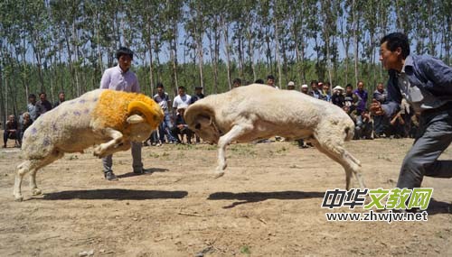 5月11日,山東省定陶縣陳集鎮(zhèn)中沙海村第二屆斗羊大賽舉行,現場趣味盎然,叫好聲不斷,嘉祥、單縣、巨野等地斗羊愛好者紛紛前來參賽,210多只羊參加了角逐。近年來,陳集鎮(zhèn)農民大力發(fā)展畜牧養(yǎng)殖業(yè),斗羊活動成為養(yǎng)殖戶們展示成果的表現方式。