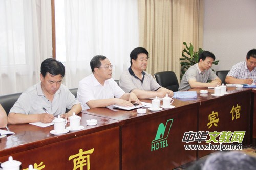 圖為6月8日晚,永年縣教工委書記、教育局局長李一剛在邯鄲市冀南賓館聽取掛職校長的工作匯報。