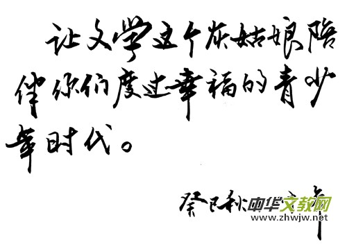 9月25日,第二屆楠溪江文化旅游節(jié)開幕之際,“再識楠溪江全國知名作家采風團”團長中國作協(xié)副主席葉辛率柳建偉、麥家、鮑爾吉·原野、袁敏、王益軍等18位知名作家到永嘉楠溪江,開展為期4天的采風創(chuàng)作活動。永嘉縣作協(xié)理事、城關中學鵝浦文學社谷福林老師隨行采風。期間,中國作協(xié)葉辛副主席翻閱永嘉縣城關中學鵝浦文學社社刊《鵝浦》,并欣然為鵝浦文學社題詞:“讓文學這個灰姑娘陪伴你們度過幸福的青少年時代!”美好的祝語,殷切的期望,深深感動了鵝浦文學社指導老師,有力激發(fā)了全體鵝浦文學社社員閱讀文學、創(chuàng)作文學的熱情。 (本報通訊員 徐海曉)