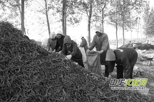 本報訊 山東省定陶縣陳集鎮(zhèn)積極引導(dǎo)農(nóng)村土地進(jìn)行合理有序流轉(zhuǎn),將零散的地塊逐步向農(nóng)業(yè)龍頭企業(yè)、合作社、種植大戶和農(nóng)機能手集中,實現(xiàn)土地集約化、規(guī)模化經(jīng)營,提高了土地產(chǎn)出效益。目前,該鎮(zhèn)已流轉(zhuǎn)土地7800多畝,使許多農(nóng)民轉(zhuǎn)身變?yōu)椤按蚬ぷ濉保瑧艟鍪?000多元。圖為七一村留守在家的老人和育齡婦女為合作社打工收辣椒。