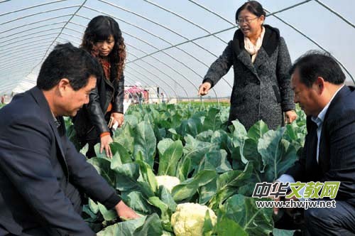 薛城區(qū)常莊鎮(zhèn)西小村采納該鎮(zhèn)人大代表建議,在該鎮(zhèn)埠西村流轉(zhuǎn)土地310畝,完成水電路等基礎(chǔ)設(shè)施建設(shè),積極提供產(chǎn)供銷一條路服務(wù),鼓勵(lì)農(nóng)民發(fā)展鋼架大拱棚蔬菜種植。圖為該鎮(zhèn)人大代表賀新云等查看菜花生產(chǎn)情況。 (李自發(fā) 孫英姿)