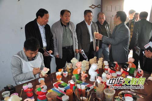棗莊市薛城區(qū)常莊鎮(zhèn)采納人大代表建議,依托洛房泥塑,大力發(fā)掘與此相關(guān)的古文化,投資5萬余元為洛房泥塑修建了批量生產(chǎn)基地,有效保護(hù)了民族文化產(chǎn)業(yè)。圖為區(qū)人大等領(lǐng)導(dǎo)在洛房泥塑文化用品公司視察。 (李自發(fā) 茂磊)