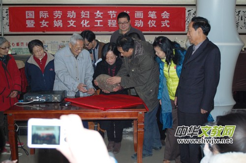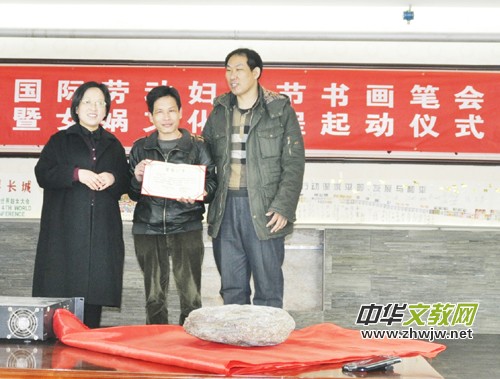 活動(dòng)中來(lái)自邯鄲涉縣的女?huà)z文化工程發(fā)起人——王愛(ài)英女士為到場(chǎng)嘉賓們展示“女?huà)z補(bǔ)天石”,為本次活動(dòng)掀起了新的高潮!帶到現(xiàn)場(chǎng)的小塊“女?huà)z補(bǔ)天石”嘉賓們爭(zhēng)相收藏。