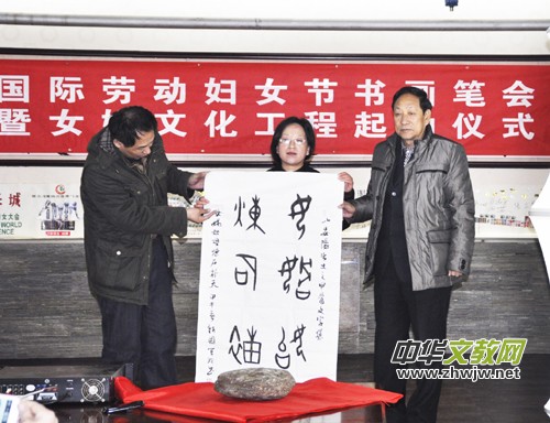 本網(wǎng)訊 2014年3月8日,國(guó)際勞動(dòng)?jì)D女節(jié)書(shū)畫(huà)筆會(huì)暨女?huà)z文化工程起動(dòng)儀式在北京鴻福樓舉行,活動(dòng)現(xiàn)場(chǎng),女書(shū)畫(huà)家們巾幗不讓須眉,以歌頌女性風(fēng)采,弘揚(yáng)母親文化為主題,和到會(huì)的男書(shū)畫(huà)家們創(chuàng)作出一幅幅優(yōu)秀作品。