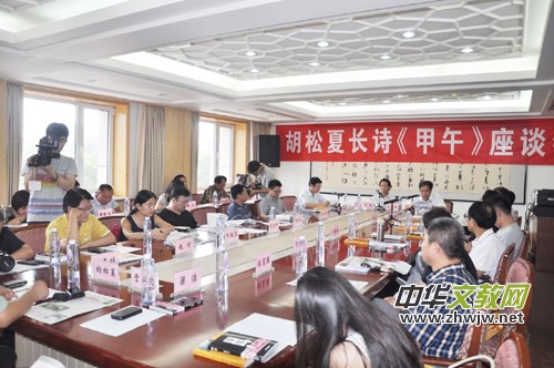 本報訊 8月1日,由中華先進(jìn)文化促進(jìn)會主辦的“胡松夏長詩《甲午》座談會”在北京舉行,魯迅文學(xué)院常務(wù)副院長成曾樾、《詩刊》常務(wù)副主編商震以及本報主編靳新國(笑琰)、徐忠志、趙智、劉立云、康橋、韓麗敏、周占林、張富英、邵建國、安琪、蔡詩華等軍地數(shù)十位詩人、詩歌評論家應(yīng)邀參加座談,會議由中華先進(jìn)文化促進(jìn)會副會長張泓主持。