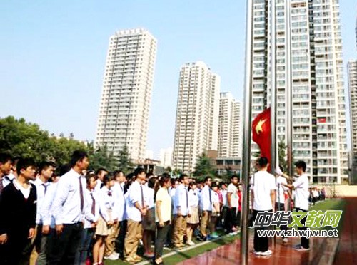 上午10點(diǎn)5分,伴隨著雄壯的國(guó)歌聲,鮮艷的五星紅旗冉冉升起。學(xué)校操場(chǎng)上2000多名學(xué)生身著校服排著整齊的隊(duì)伍,面向國(guó)旗,莊嚴(yán)敬禮。