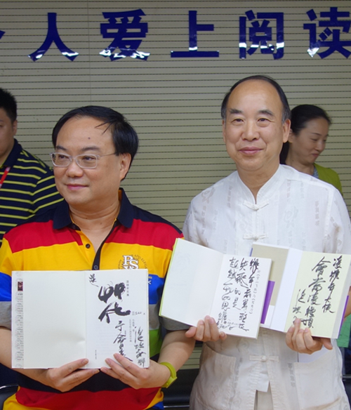 著名武俠小說(shuō)宗師溫瑞安為讀者簽名留念(2014年9月28日)