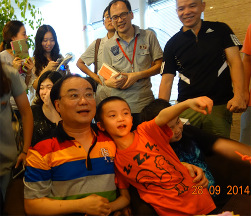 溫瑞安與七歲的小兒子在天翼書吧讀者中間(14年9月28日)
