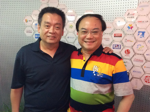 凌鼎年與溫瑞安大俠合影于杭州天翼閱讀(2014年9月28日)