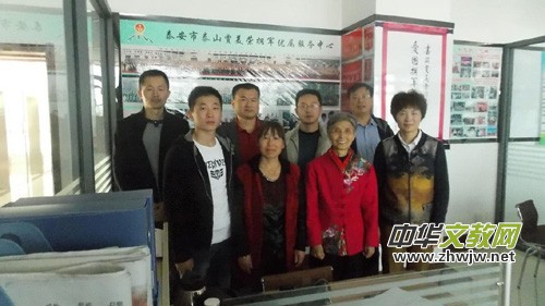 本網(wǎng)訊(記者王克煜 張京衛(wèi) 陶?qǐng)@園報(bào)道)2014年10月13日上午,正在探家的南京軍區(qū)某部初級(jí)士官李雙文與爸爸、中國(guó)擁軍新聞人物聯(lián)盟副秘書(shū)長(zhǎng)、軍創(chuàng)網(wǎng)文化總監(jiān)李法明和媽媽劉金花來(lái)到了泰安市賈美榮擁軍優(yōu)屬服務(wù)中心,受到了全國(guó)愛(ài)國(guó)擁軍模范、全軍英模代表、“擁軍”媽媽賈美榮的熱情接待,在賈“媽媽"的熱心介紹下,李雙文參觀學(xué)習(xí)了賈美榮擁軍優(yōu)屬宣傳欄,真切地感受到了原國(guó)家主席胡錦濤,原中央軍委副主席遲浩田上將,中央軍委副主席范長(zhǎng)龍上將、中央軍委副主席許其亮上將等黨和國(guó)家軍地領(lǐng)導(dǎo)人親切接見(jiàn)賈美榮這位”擁軍”媽媽時(shí)的一張張珍貴合影中展現(xiàn)的那難忘而自豪的雙擁活動(dòng)情景。臨別,李雙文并與擁軍“媽媽”賈美榮、泰安市賈美榮擁軍優(yōu)屬服務(wù)中心副主任李玉女士、泰安市公安局巡特警支隊(duì)三大隊(duì)教導(dǎo)員蘇宗信、肥城市武裝部原政工科長(zhǎng)張向農(nóng)、泰安市俊程旅行社有限公司總經(jīng)理李兵等愛(ài)國(guó)擁軍人士合影留念。