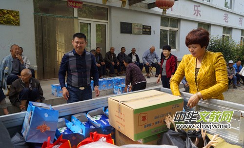 本報(bào)訊 9月30日,山東省定陶縣陳集鎮(zhèn)前沙海村青年農(nóng)民、共產(chǎn)黨員沙元國,連續(xù)第四年到鎮(zhèn)敬老院獻(xiàn)愛心,為老人們送來羊肉、燒雞、奶粉等價(jià)值5000余元的節(jié)日禮品,院民們個(gè)個(gè)喜上眉梢。沙元國情系桑梓,熱心公益事業(yè),16年來,他已累計(jì)捐助善款達(dá)120余萬元回報(bào)社會。圖為沙元國和妻子馬文娟為老人們搬運(yùn)禮品。 (苑肇波)