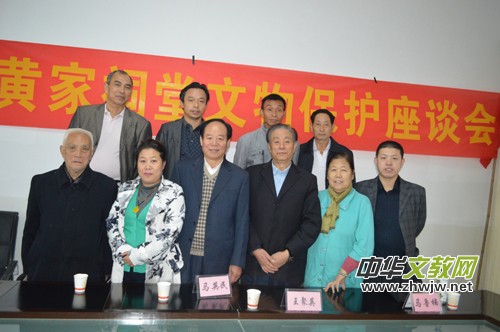 黃家祠堂文物保護(hù)座談會(huì)上黃家代表和專家們合影留念黃維本會(huì)長(zhǎng)(后排左一)黃維金(后排左二)黃端平(后排左三)黃維元(后排右一)