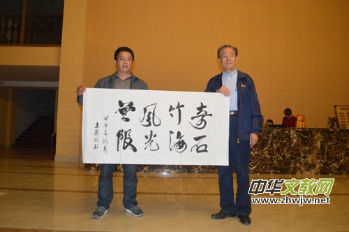 宜賓市竹石林景區(qū)董事長(zhǎng)唐克樹和中國(guó)紅色文化研究院常務(wù)副院長(zhǎng)王聚英合影,王院長(zhǎng)為景區(qū)寫下了:奇石竹海,風(fēng)光無限勉勵(lì)景區(qū)發(fā)展。