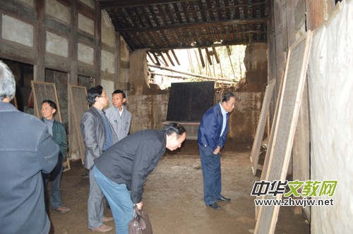 中國(guó)紅色文化研究院常務(wù)副院長(zhǎng)王聚英研究員和中國(guó)國(guó)家博物館原副館長(zhǎng)馬英民認(rèn)真研究黃家祠堂的相關(guān)遺物。