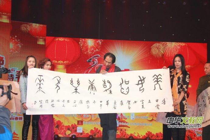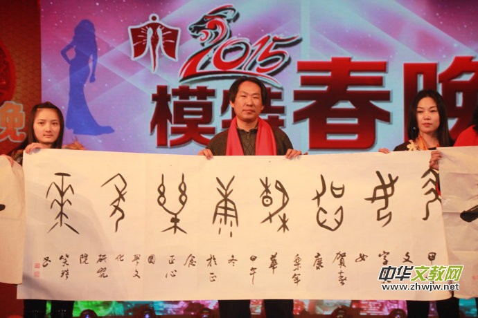 本網(wǎng)總編笑琰參加2015模特春晚并展示甲骨文書法