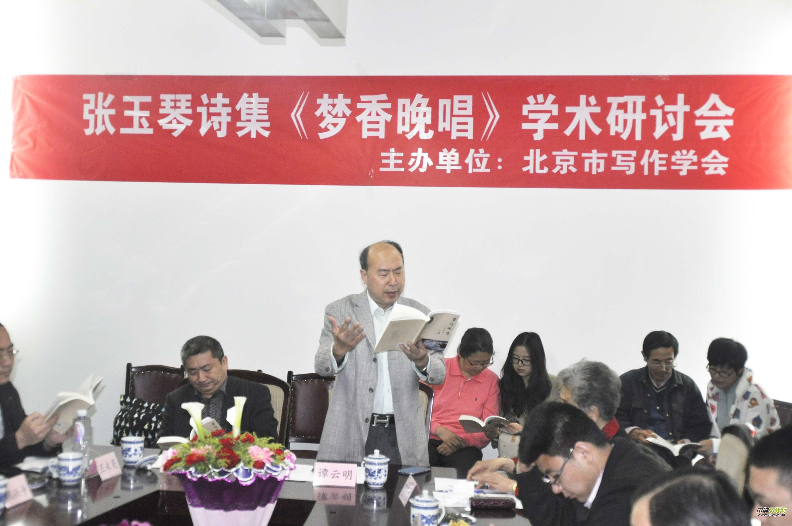 北京市寫(xiě)作學(xué)會(huì)常務(wù)副會(huì)長(zhǎng)兼秘書(shū)長(zhǎng)譚云明教授在朗誦張玉琴的詩(shī)