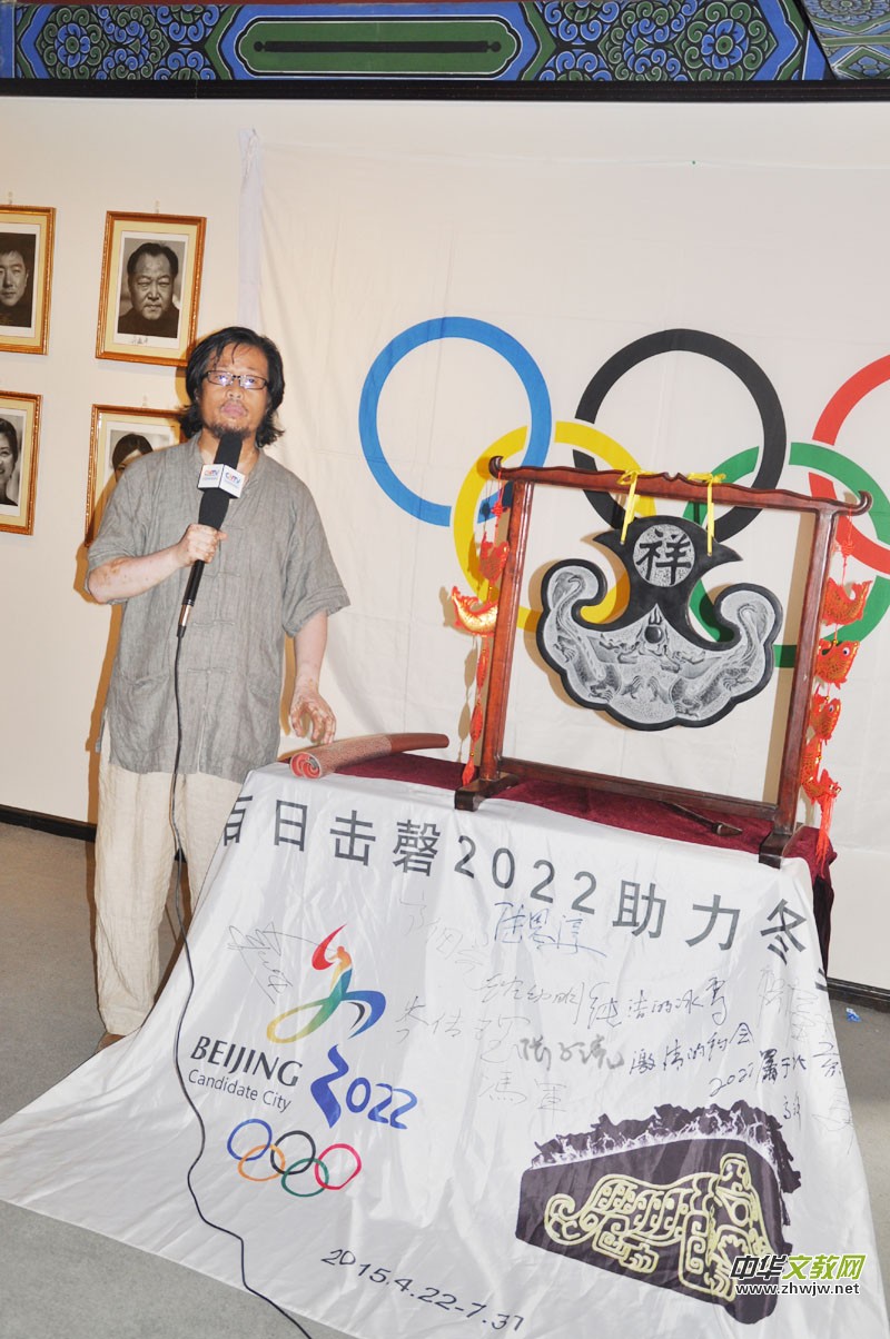 百日擊磬簽名助力申冬奧活動由北京奧運藏卷閣聯(lián)袂中國傳統(tǒng)文化促進會“磬天籟”課題組共同倡議發(fā)起,在北京奧運火炬手協(xié)會、北京正念正心國學文化研究院、華谷文化產(chǎn)業(yè)辦公室等單位大力支持下,在由國務(wù)院參事室主管的華鼎國學研究基金會和北京市文物局主管的大鐘寺古鐘博物館共同關(guān)懷、大力支持下,于2015年4月22日在北京大鐘寺古鐘博物館正式啟動!以“金聲玉振”的形式開始了題為:“鳴鐘祈福迎奧運、擊磬納祥待佳音”的助力京張申冬奧之圣火征途!本活動意喻在國際奧委會投票選舉2022年冬奧會舉辦城市倒計時100天期間,以擊磬和簽名的方式為京張聯(lián)合申冬奧助威、加油。