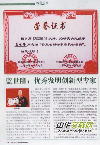 藍(lán)世隆,1938年6月出生,廣西省桂平人,畢業(yè)于廣西醫(yī)學(xué)院醫(yī)療系。現(xiàn)任桂平市中醫(yī)院科研室主任,骨科副主任醫(yī)師。中華醫(yī)學(xué)會(huì)中西結(jié)合骨科分會(huì)委員,中國(guó)名醫(yī)疑難病研究所研究員。擅長(zhǎng)骨傷科,對(duì)中西醫(yī)結(jié)合治療開(kāi)放感生骨折,骨髓炎及骨關(guān)節(jié)結(jié)核病造詣?lì)H深,1993年曾主持省研重點(diǎn)項(xiàng)目“慢性骨髓為辯證分型綜合治療”的研究”,1994年榮獲桂平市“首批西科技成果”三等獎(jiǎng),19894年榮獲桂平市“首批專(zhuān)業(yè)拔尖人才”及“科技黨員標(biāo)兵”光榮稱(chēng)號(hào),1995年評(píng)為“玉林地區(qū)優(yōu)秀科技工作者”獲重獎(jiǎng)。1996年應(yīng)美國(guó)中醫(yī)研究邀請(qǐng)赴美參加第三屆傳統(tǒng)醫(yī)學(xué)優(yōu)秀學(xué)術(shù)交流頒獎(jiǎng)大會(huì),榮獲“世界突出貢獻(xiàn)金獎(jiǎng)”及金杯,著作有《骨髓》、《實(shí)用骨髓炎診斷學(xué)》、《頸椎病現(xiàn)代中醫(yī)新療法》、《自我按摩術(shù)》4部著作,撰有“中醫(yī)為主綜合治療慢性骨髓炎”、“中醫(yī)藥治療開(kāi)放感染骨干骨折”、“復(fù)方蛇總管液治療創(chuàng)面感染”等32篇論文在省級(jí)以上刊物發(fā)表,其中取得全國(guó)醫(yī)藥衛(wèi)生優(yōu)秀論文一等獎(jiǎng)3篇,二等獎(jiǎng)3篇,三等獎(jiǎng)3篇,取得科技進(jìn)步獎(jiǎng)有:桂平市級(jí)12項(xiàng),玉林地區(qū)級(jí)7項(xiàng),廣西衛(wèi)生廳級(jí)1項(xiàng),廣西省部級(jí)1項(xiàng),“抗癆丸治療結(jié)核病的療效觀(guān)察”及“復(fù)方蛇總管液治療創(chuàng)面療效觀(guān)察”1997年已取得中華人民共和國(guó)專(zhuān)利。