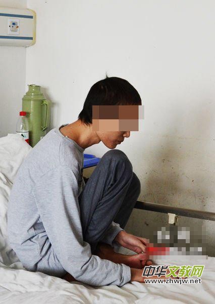 “這還是長了不少肉呢,剛來的時候更輕。”一旁的護士介紹,今年7月份肖軍是坐在輪椅上被推來的,幾乎就是皮包骨頭,連血管都很難找到。大約治療一個月后,體重長到35公斤,如今兩個月了,才長到38公斤。