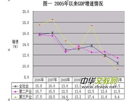 (一)產(chǎn)業(yè)結(jié)構(gòu)節(jié)能效果不明顯。盡管我市下了大力氣發(fā)展第三產(chǎn)業(yè),但是受各種因素制約,我市第三產(chǎn)業(yè)的增速并不穩(wěn)定,未出現(xiàn)長年“領(lǐng)跑”之勢。在某些年份我市經(jīng)濟(jì)增長仍然依靠二產(chǎn)(主要是工業(yè))拉動,例如09、11、12年(見圖一)。上述三年由于二產(chǎn)增速快、三產(chǎn)增速慢,三產(chǎn)占比不升反降(按照可比價計算)。