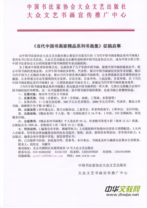 本中心現(xiàn)在開(kāi)始組織《教育新領(lǐng)域叢書(shū)》《文星薈萃叢書(shū)》書(shū)稿,同時(shí)組織中國(guó)出版集團(tuán)·現(xiàn)代出版社、中國(guó)文聯(lián)出版社、大眾文藝出版社、中國(guó)書(shū)法出版社等多家出版社10多種《叢書(shū)》書(shū)稿,凡文學(xué)藝術(shù)、文化教育、社會(huì)科學(xué)等方面的書(shū)稿均可納入以上叢書(shū)出版。