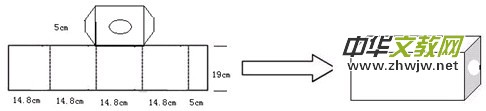 1、制作小暗箱,用長65cm,寬20cm的硬紙片做成15cmX15cmX20cm的長方體。