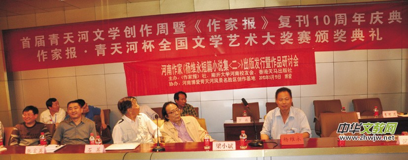 本報訊 乘著十八大和《作家報》復(fù)刊10周年的春風(fēng),2013年5月18日下午3時,由《作家報》社、,南開大學(xué)河南校友會、香港天馬出版社主辦,河南博愛青天河風(fēng)景名勝區(qū)創(chuàng)作基地協(xié)辦的河南作家《楊維永短篇小說集2》出版發(fā)行暨作品研討會,在河南博愛青天河創(chuàng)作基地隆重召開。南開大學(xué)中文系校友、《人民日報》原副總編、中國著名作家石英,中國文聯(lián)《神州》雜志社副社長毛曉春,中國作協(xié)《中國作家》雜志社主任編輯任啟發(fā),中央電視臺科教文娛欄目組編導(dǎo)凌零,文化部《中華文藝家》主編王耀東,河南文藝出版社原社長王幅明,《作家報》總篇張富英及參加《作家報》復(fù)刊十周年慶典和創(chuàng)作筆會的全國130多位作家、評論家參加了會議,與會者對《小說集2》所收這10多年來的文學(xué)作品思想內(nèi)容和藝術(shù)成就均給予了充分肯定和高度評價,認(rèn)為楊維永的小說創(chuàng)作風(fēng)格基本臻于成熟(與會發(fā)言和評論擇期專發(fā)),楊維永繼2001年10月由香港天馬出版社出版發(fā)行第一本短篇小說集(1987—2001年間公開發(fā)表過的文學(xué)作品)后,近日(2013年5月),又由香港天馬出版社出版發(fā)行了第二集《楊維永短篇小說集2》(2002—2013年間公開發(fā)表過的文學(xué)作品)。