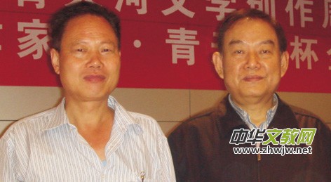 2008年5月8日上午,在南陽市白河賓館第三次文代會會場,楊維永(右)與中國作協(xié)主席團(tuán)委員、河南省作協(xié)名譽(yù)主席、南陽市文聯(lián)副主席、作協(xié)主席、著名作家二月河先生(2010年1月任鄭州大學(xué)文學(xué)院院長)交談文學(xué)創(chuàng)作情況。