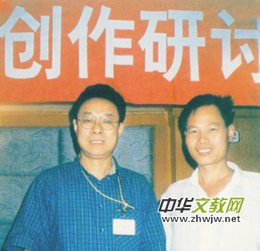 2001年8月17日上午,在北京參加《十月》筆會期間楊維永(右一)與著名作家梁曉聲(左一)合影。