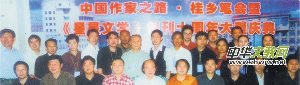 2006年9月30日,楊維永 前排(右二)在湖北咸寧《星星文學(xué)》創(chuàng)刊10周年慶典會上,同《長江文藝》雜志社社長、主編劉益善(右六)、《芳草》雜志社主編、著名作家劉醒龍(右七)、《星星文學(xué)》執(zhí)行主編周益民(阿民、右一)等與會作家主編合影。