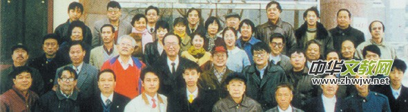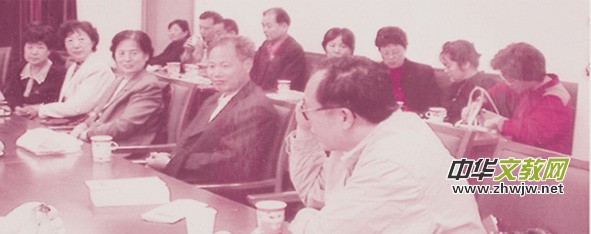 2004年10月17日上午,楊維永(前排右二)在天津南開大學(xué)文學(xué)院章閣廳與參加“百年南開暨南開大學(xué)建校85周年”校慶的中文系校友們交流創(chuàng)作經(jīng)驗。