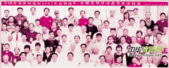2007年5月26日,中國作家協(xié)會會員,南開大學(xué)中文系函授畢業(yè)生楊維永(后排左六),在河南省商丘市、永城縣與南開大學(xué)校友、中國文聯(lián)原黨組副書記、著名作家孟偉哉,前排(左一),商丘市市委書記劉滿倉(左二、2008年任河南省政府副省長),中國作協(xié)副主席李存葆(左三),中國作協(xié)《文藝報》總編范詠戈(左五),茅盾,魯迅文學(xué)獎評委雷達(dá)(左六),人民文學(xué)出版社社長、《當(dāng)代》主編潘凱雄(左八),中宣部文藝局原副局長成志偉(左十),《青年文學(xué)》主編、著名作家邱華棟(左十一)等領(lǐng)導(dǎo)和作家合影。