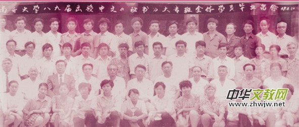 1989年8月30日上午,楊維永(后排左三),在鄭州市職工大學(xué)禮堂舉行的南開大學(xué)中文系一九八九屆函授畢業(yè)生典禮大會上,與中科院院士、南開大學(xué)校長母國光教授、前二排(左三),副校長王大遂教授(左一)、中文系主任郝世峰教授(左五),成教院院長趙文芳教授(左六)、中文系劉福友教授(右一)、河南省函授總站陳萍老師(前排右四)、王寶善老師(后排右一)等師生們合影。
