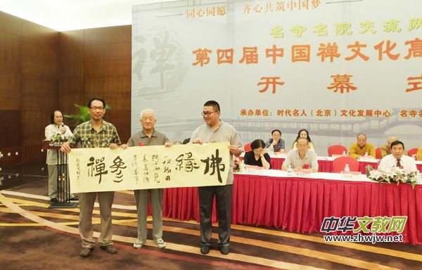 本報訊 2013年8月3日,第四屆中國禪文化高峰論壇在北京國家會議中心隆重召開。此次禪文化高峰論壇主題為“同心同愿,齊心共筑中國夢”,由時代名人(北京)文化發(fā)展中心主辦,國家宗教局原副局長馮傳宗先生,中國佛教協(xié)會原副秘書長蘧俊忠先生,中國佛教協(xié)會北京靈光寺監(jiān)院演道法師,中國佛教協(xié)會北京廣化寺僧執(zhí)、佛學(xué)研究所教授釋廣曙法師,中國佛教協(xié)會北京廣化寺、書法家大師釋印呈法師,中機集團副董事長李泰芳女士,中國人民解放軍軍械工程學(xué)院院長張家鵬將軍,著名品牌專家、中國國際名牌協(xié)會會長解艾蘭女士,著名傳統(tǒng)文化研究學(xué)者程永華先生,中國寺廟文化促進會會長,華夏寺廟文化網(wǎng)總編、科技信息報今日文教周刊主編靳新國先生等宗教局及佛協(xié)領(lǐng)導(dǎo)一百余人應(yīng)邀出席。會議由著名易學(xué)書畫家程文鳴主持。