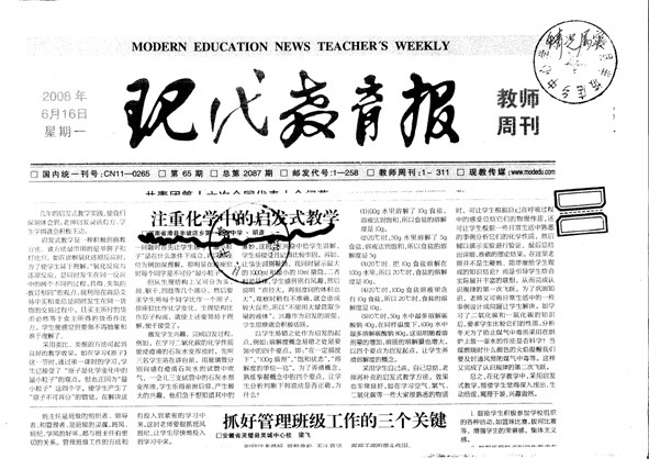 采用學(xué)生自己講,自己總結(jié),老師再補(bǔ)充的啟發(fā)式教學(xué)方法,效果也非常良好,如在學(xué)習(xí)空氣、氧氣、二氧化碳等一些大家很熟悉的物質(zhì)時(shí),可讓學(xué)生根據(jù)自己在呼吸過程’中的感受總結(jié)它們的物理性質(zhì),還可讓學(xué)生根據(jù)一些日常生活中熟悉的事例分析它們的化學(xué)性質(zhì),然后輔以演示實(shí)驗(yàn)進(jìn)行驗(yàn)證,最后總結(jié)出詳細(xì)、準(zhǔn)確的理論結(jié)果。在這里老師并不是生硬地、簡(jiǎn)單塞給學(xué)生現(xiàn)成的知識(shí)結(jié)論?而是引導(dǎo)學(xué)生結(jié)合實(shí)際展開豐富的聯(lián)想,從而完成認(rèn)識(shí)規(guī)律的第一次飛躍。為了鞏固知識(shí),老師又可將日常生活中的一些事例設(shè)計(jì)成問題讓學(xué)生解決。如學(xué)習(xí)了二氧化碳和一氧化碳的知識(shí)后,要求學(xué)生比較它們的性質(zhì),分析冬天為了防止煤氣中毒而采用在烘爐上放一壺水的作法是否科學(xué)?當(dāng)煤燃燒時(shí)什么顏色的火焰提醒我們要及時(shí)通風(fēng)預(yù)防煤所中等。這樣又完成了認(rèn)識(shí)規(guī)律的第二次飛躍。