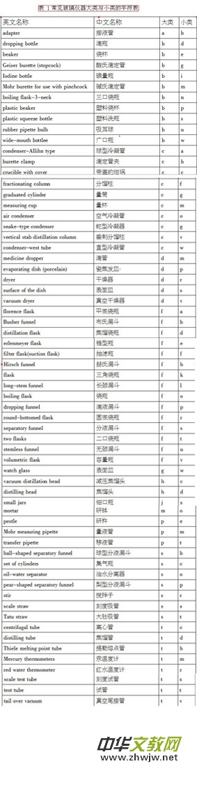 表 1常見玻璃儀器大類與小類的字符表(見文后附表)