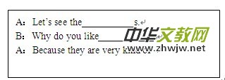 本課是聽說課,強調(diào)聽在前,說在后,所以我首先讓學生泊2a、2b的聽力,并完成課本中的任務,通過這種方式培養(yǎng)在聽力中捕捉關(guān)鍵信息的能力。同時聽后讓學生思考kin of 后面跟什么詞。其次聽完聽力,讓學生以各種形式操練該對話,從而解決本課的語言點仍然設計一個動物園的場景,讓學生兩個人一組談論他們所喜愛的動物,并給出理由。