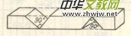 (2)、在套接好的包裝套兩端相對(duì)面的全長(zhǎng)1/5處,剪去頂角90o的部分紙皮。(如圖1)